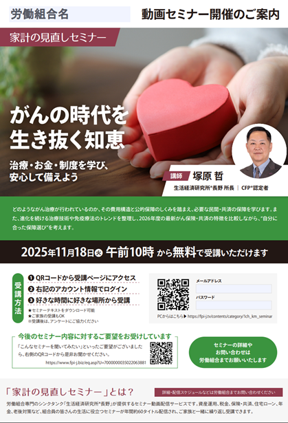 生活経済研究所長野さんからセミナー「がんの時代を生き抜く知恵」のお知らせ