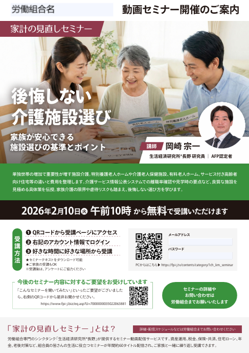 生活経済研究所長野さんからセミナー「後悔しない介護施設選び」のお知らせ